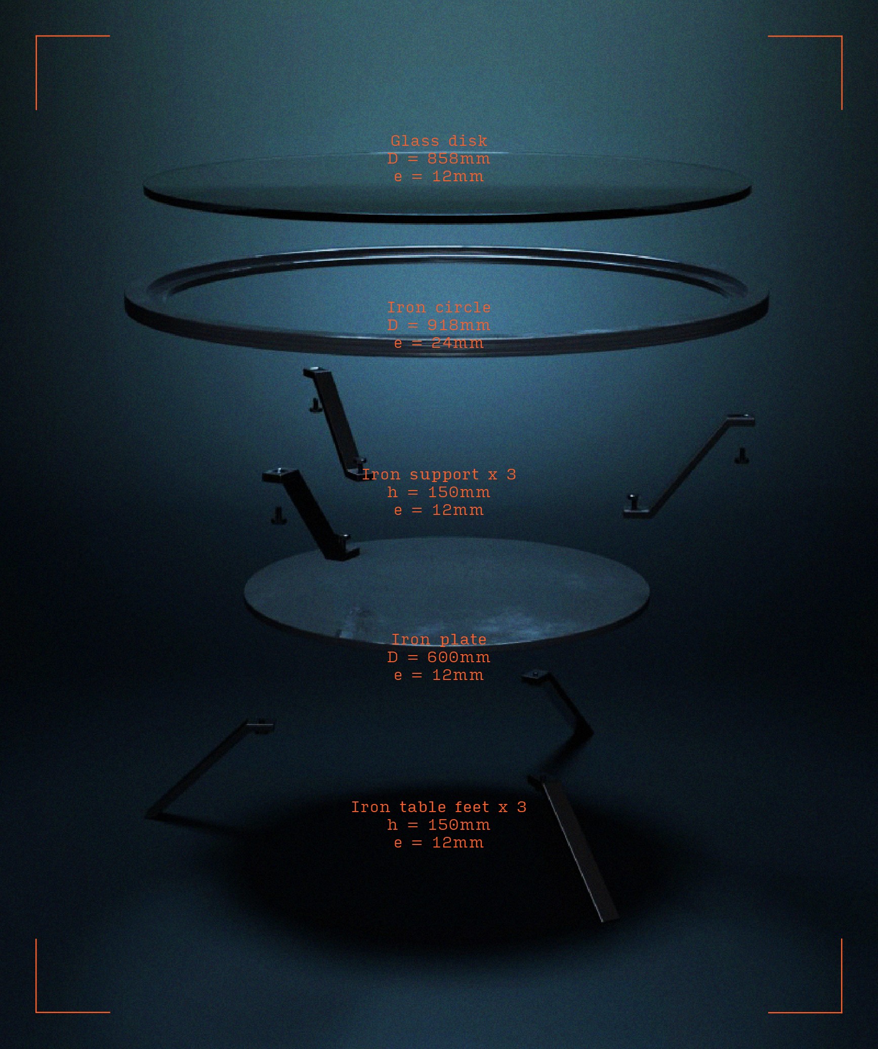 Luna is a round coffee table project that explores the contrast between lightness and material density. The metal frame draws a precise, almost graphic circle, while the glass top lightens the whole and opens the table to its surroundings. The object is intentionally minimal, yet it reveals the irregularities of the metal, its textures and subtle variations